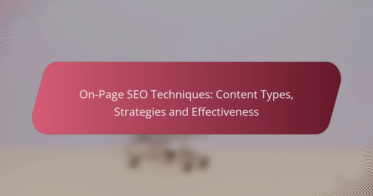 Effective on-page SEO techniques for content types focus on optimizing various elements of a webpage to improve its visibility and ranking in search engine results. Key strategies include keyword optimization, content structuring, meta tags usage, image optimization, and internal linking.